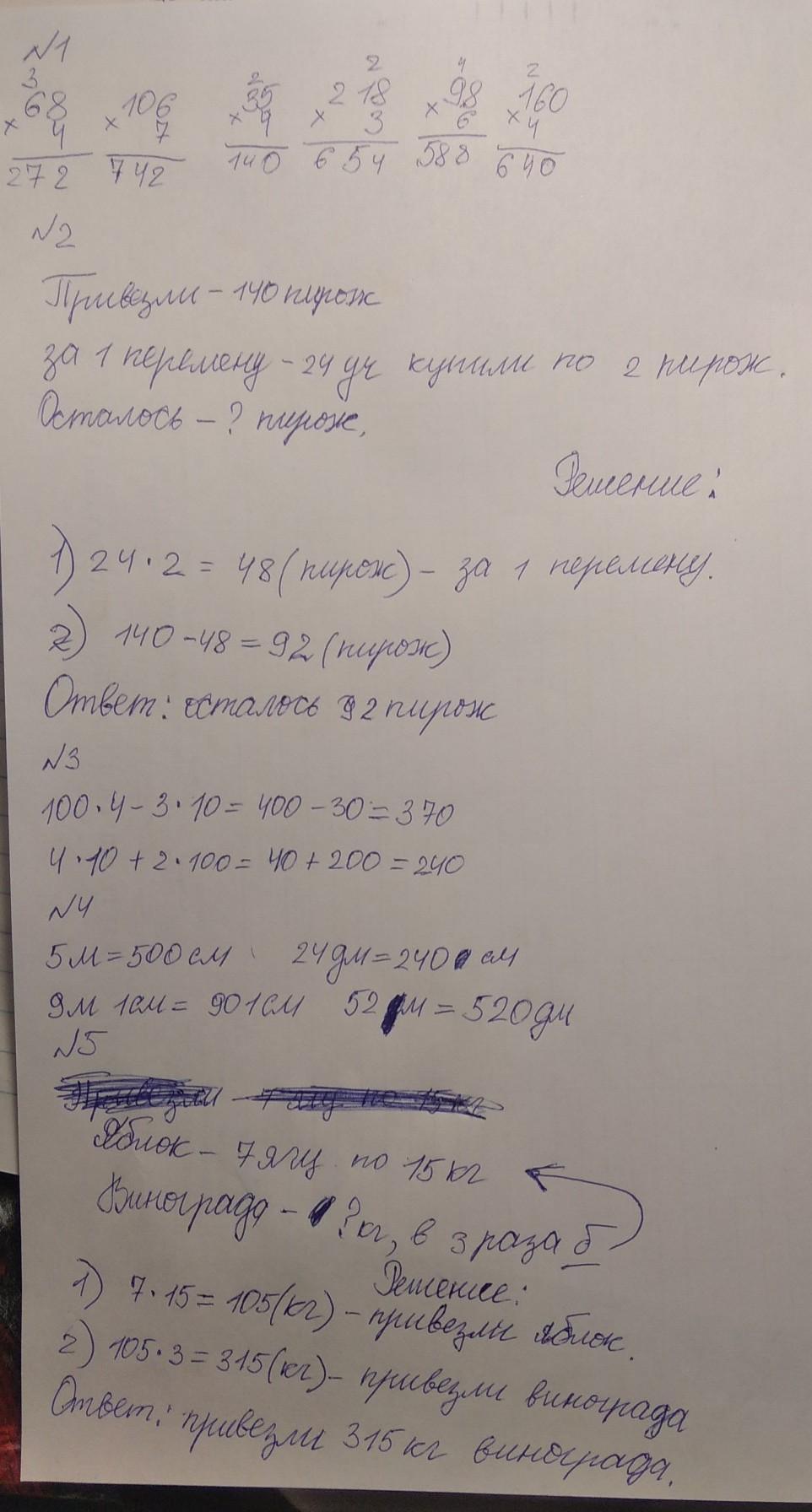 5. В магазин привезли 7 ящиков яблок по 15 кг в каждом и виноград. Винограда привезли в 3 раза больше, чем яблок. Сколько кг винограда привезли в магазин?