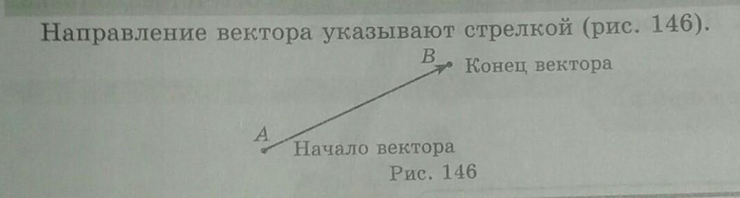 направление вектора указывает стрелкой скупка рис 146 б конец вектора А начало вектора 6 класс 2 части математика