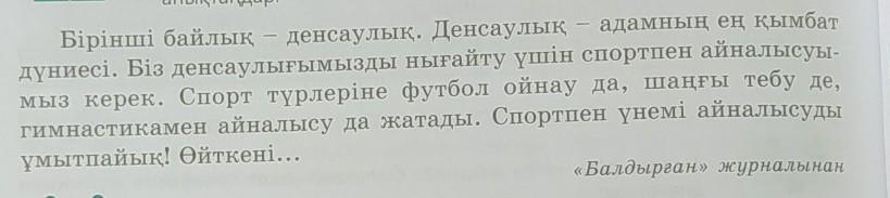 2, мәтыннын тақырыбы "денсаулық және спорт"