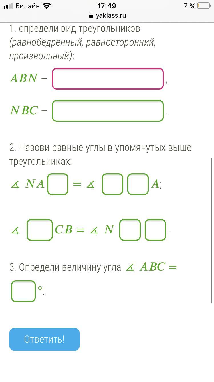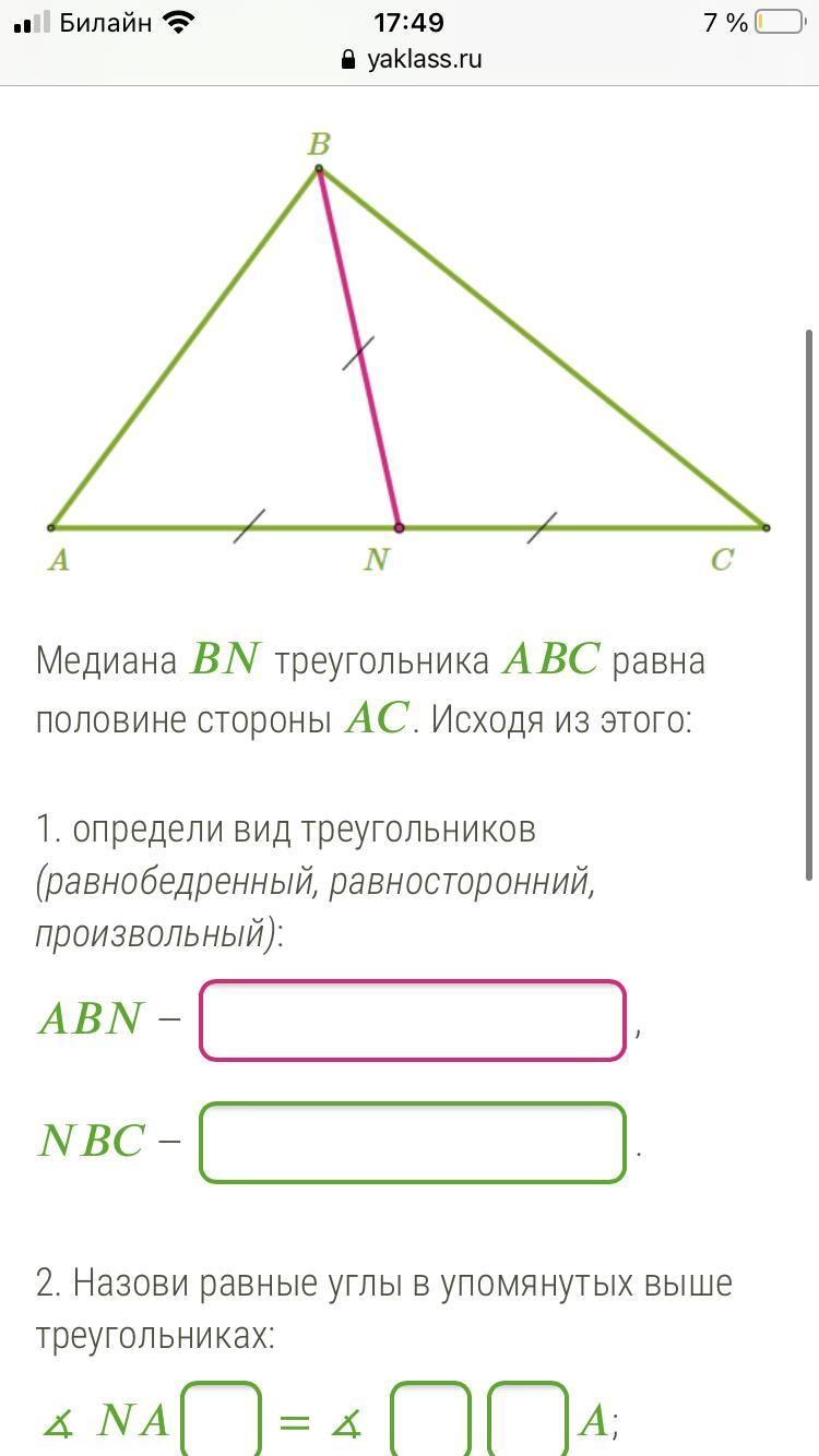 1. Δ ABN равнобедренный