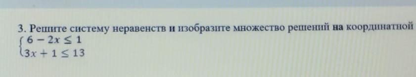 \displaystyle \left \{ {{6-2x \leq1 \hfill} \atop {3x+1\leq 13}} \right. \left \{ {{-2x\leq -5} \atop {3x\leq 12}} \right. \left \{ {{x\geq 2.5} \atop {x\leq 4}} \right. \Rightarrow 2.5\leq x\leq 5
