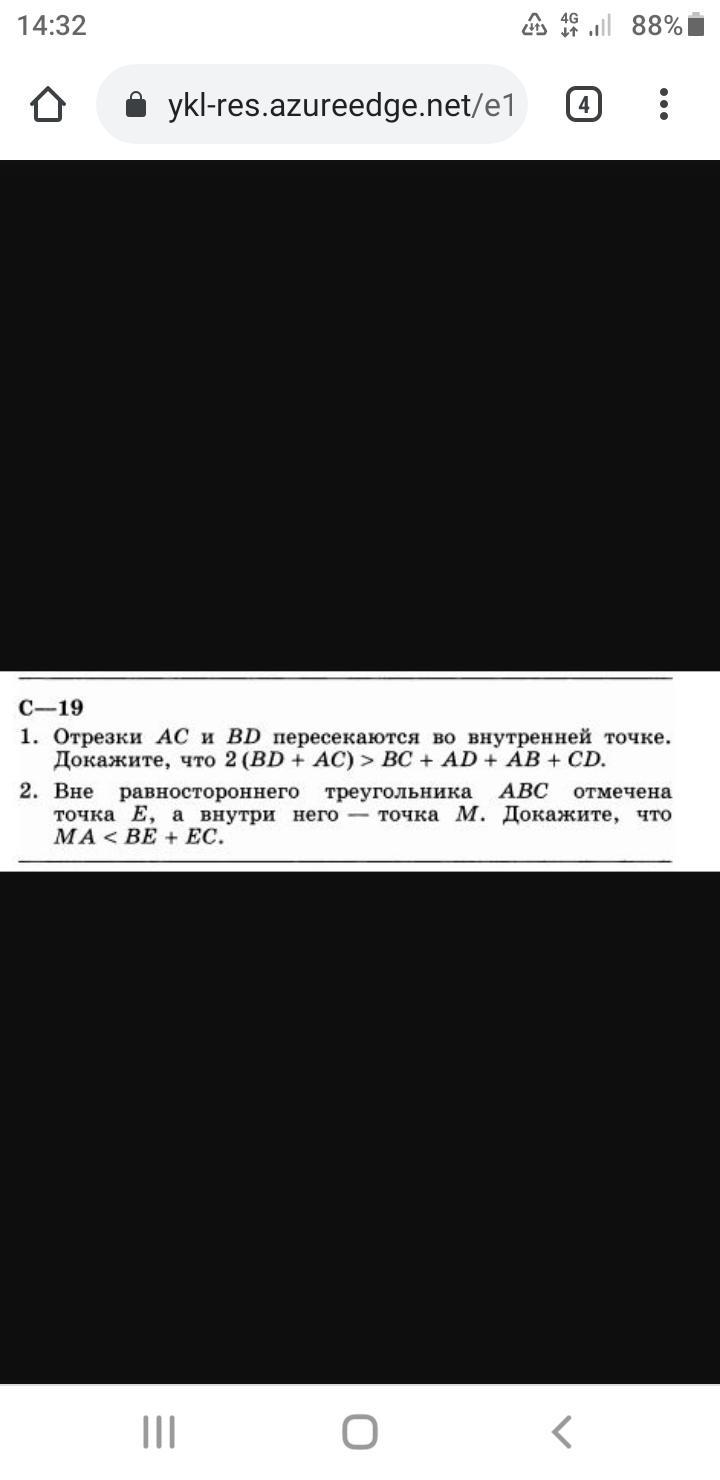 1.Отрезки АС и ВD пересекаются во внутренней точке. Докажите,что 2•(BD+AC)>BC+AD+AB+CD