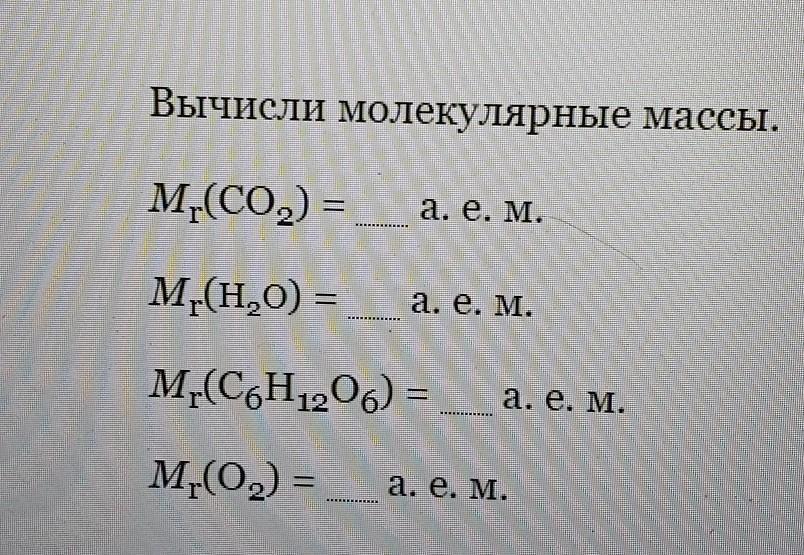 Mr (CO2) = Ar(C) + 2Ar(O) = 12 + 2*16 = 12+32 = 44 а. е. м.