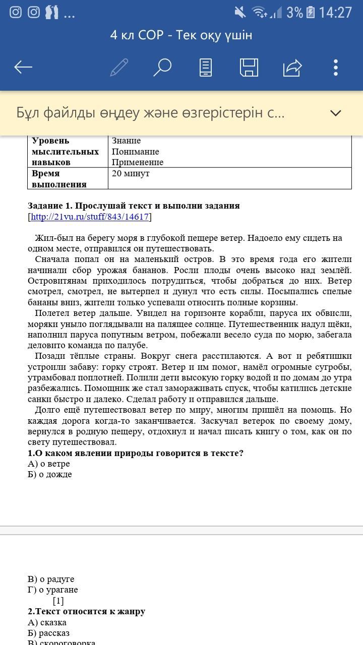 Ты должен(на) прочитать к примеру В глубокой пещере жил кто? - ветер я буду писать так напишу ветер-1 жители острова-2 и тд. А вот все эти предложения напеши я напесала в ответе