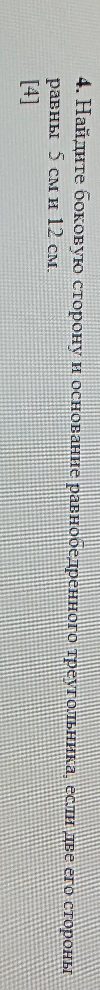 найдите боковую сторону и основание равнобедренного треугольника если две его стороны равны 5 см и 12 см