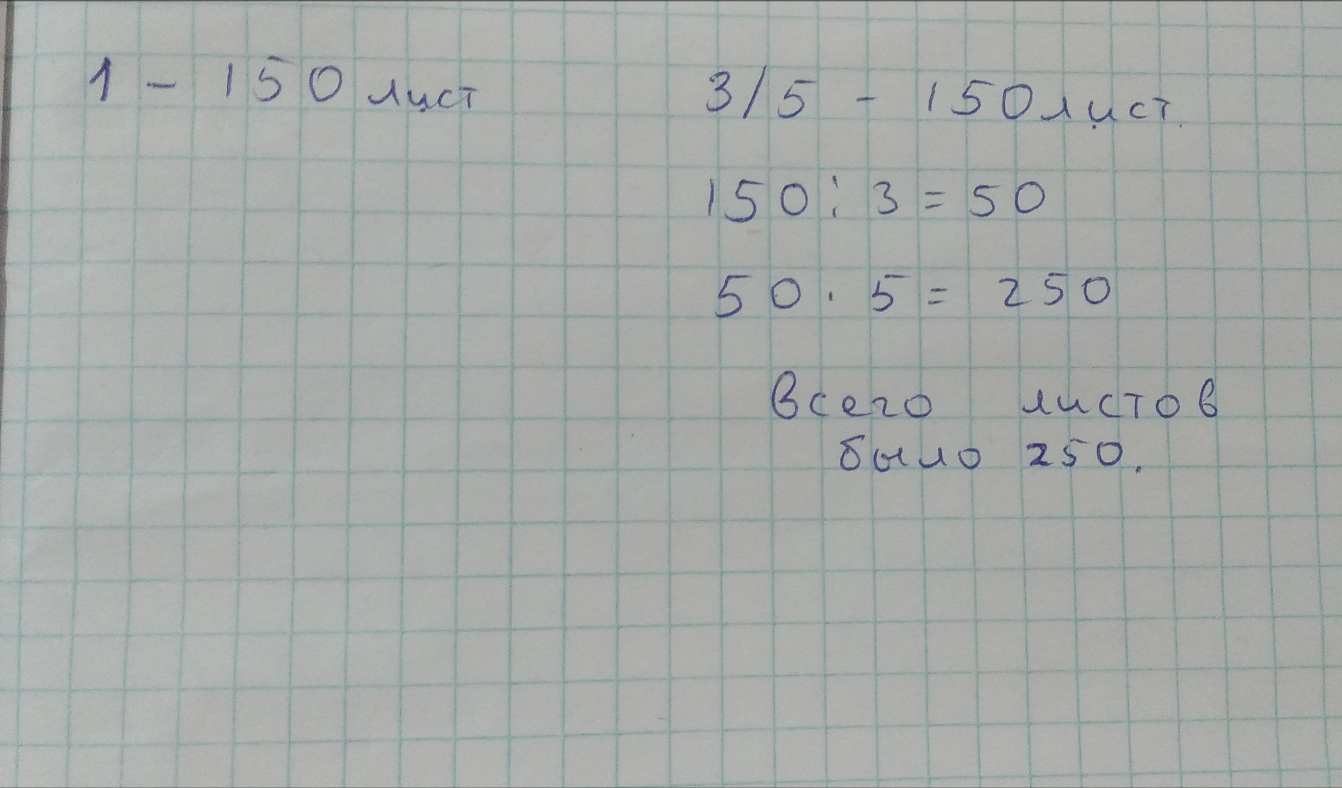 4. (1 б) На печать одной рукописи ушло 150 листов бумаги, что составляет 3/5