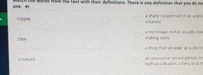 copper - a red brown......... a claw - a sharp curved...... a creature - an unusual...