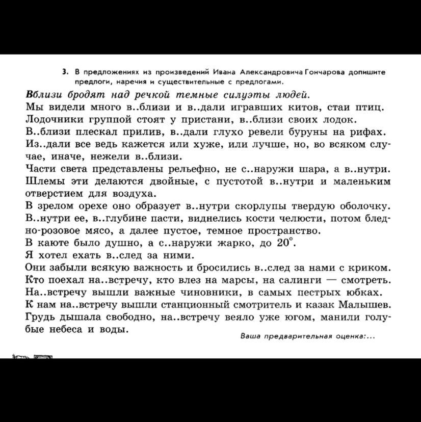 В предложениях из произведений Ивана Александровича Гончарова допишите предлоги, наречия и существительные с предлогами.