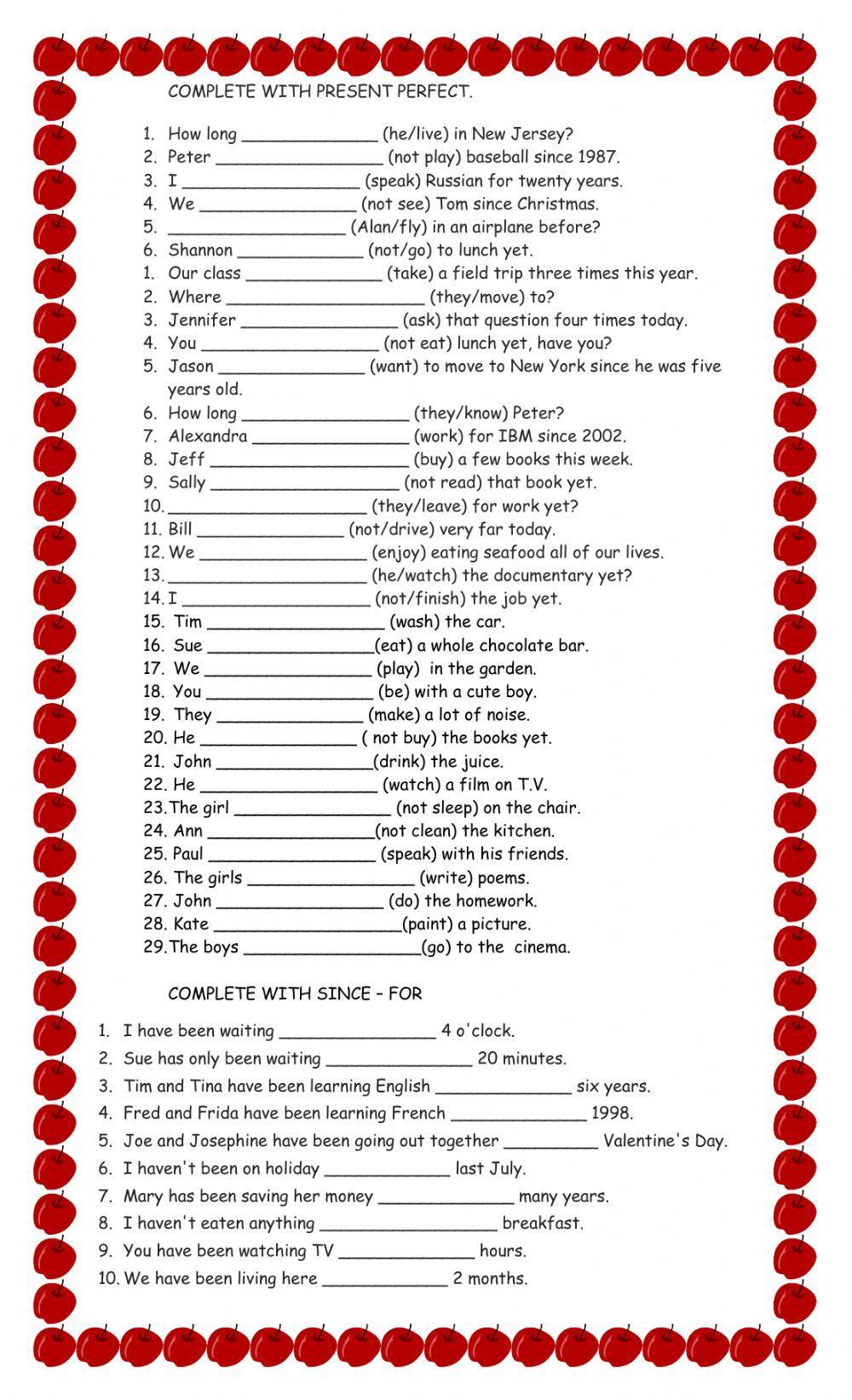 1.since 2.for 3.for 4.since 5.since 6.since 7.for 8.for 9.for 10.for