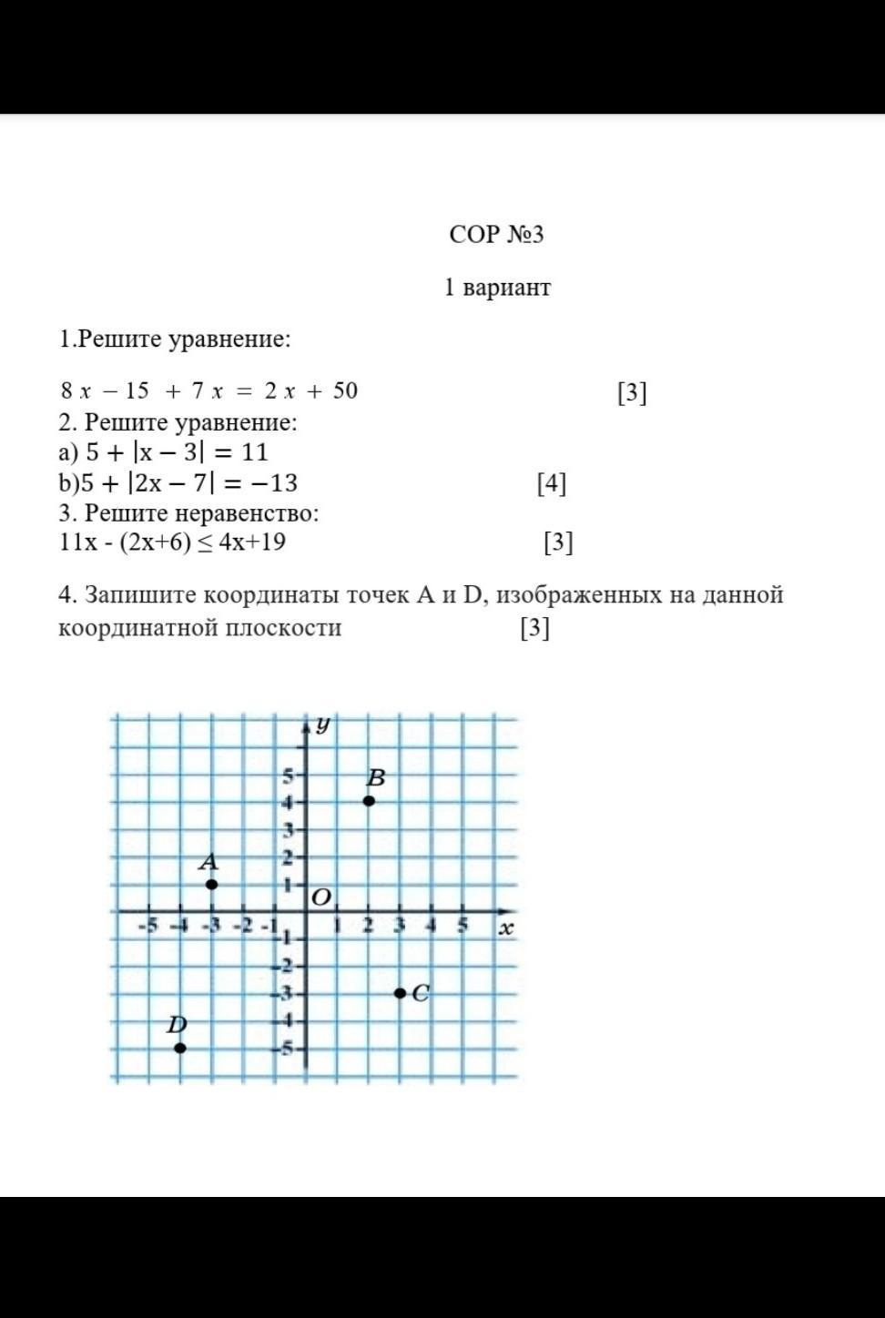 4. Запишите координаты точек А и D, изображенных на данной координатной плоскости [3]