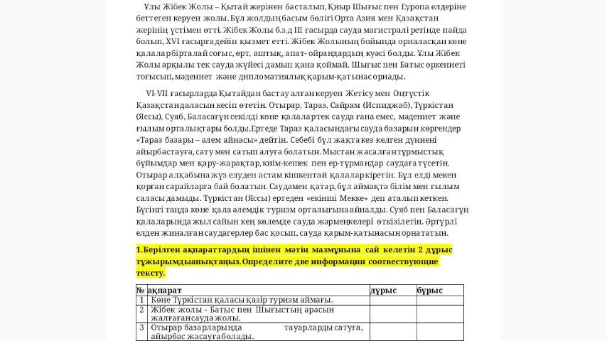 мәтін тақырыбы: ұлы жібек жолы