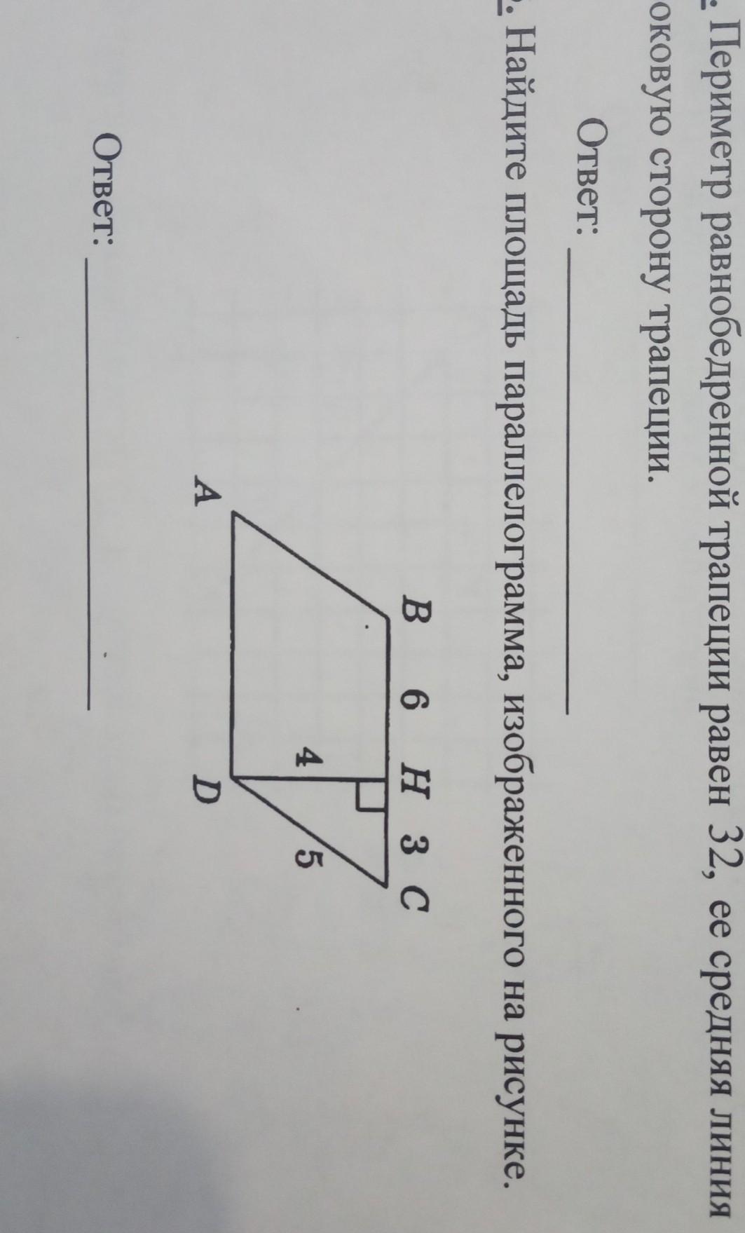 На рисунке указано размер каждой строны. Так основы и боковые стороны равны, их размер будет одинаковым
