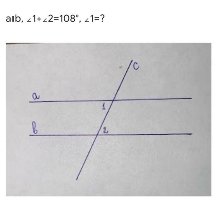 1 и 2 угол равны т.к. они внутренне накрест лежащие значит 1=2=108°:2=54°