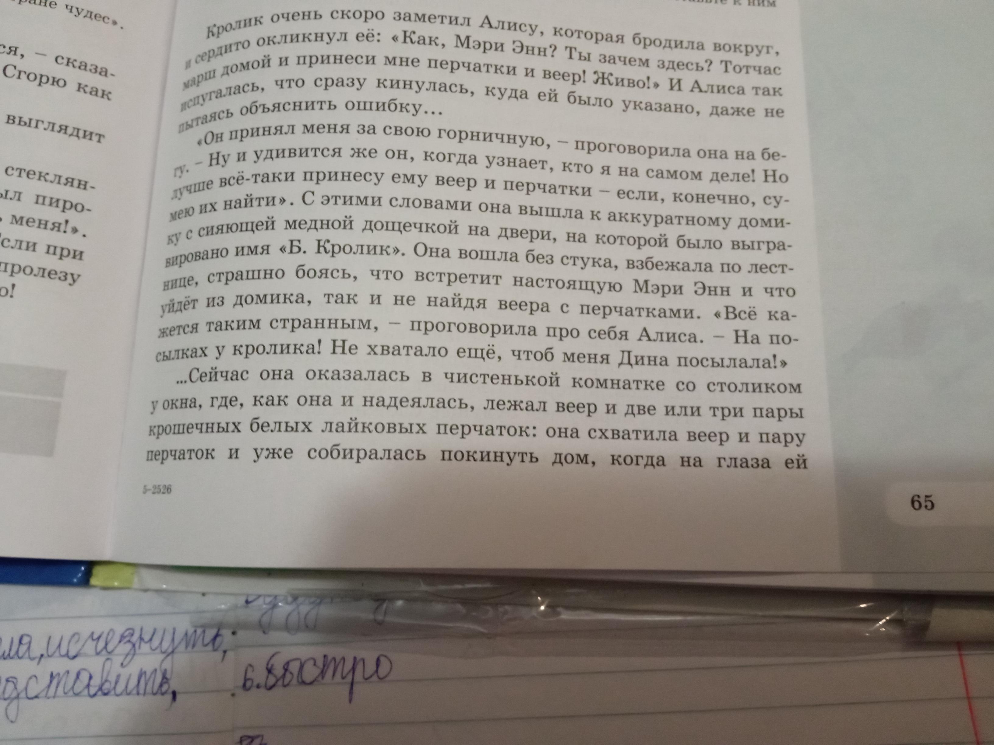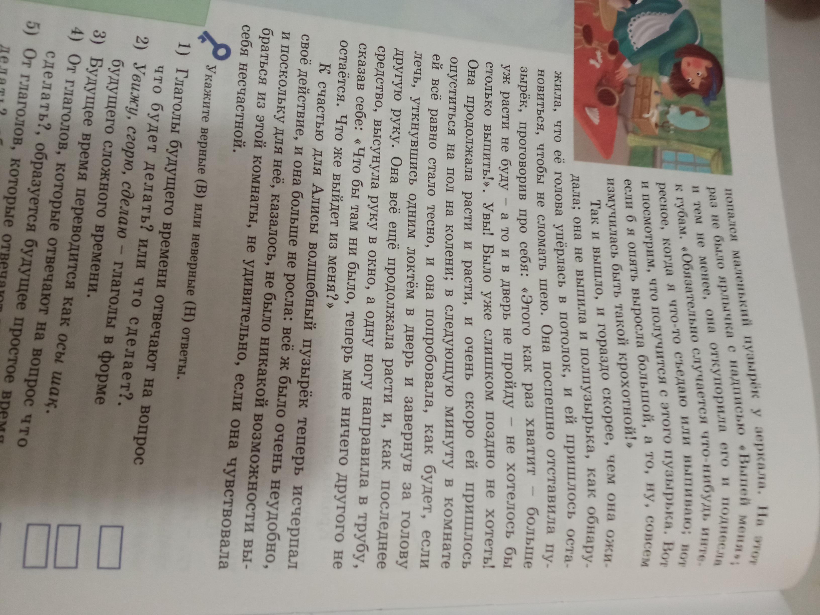 Прочитайте отрывок из 4-й главы книги «Алиса в Стране чудес». Выпишите по 5-7 глаголов: 1) в неопределённой форме, 2) в форме прошедшего времени, 3) в форме будущего времени. Поставьте к ним вопросы.