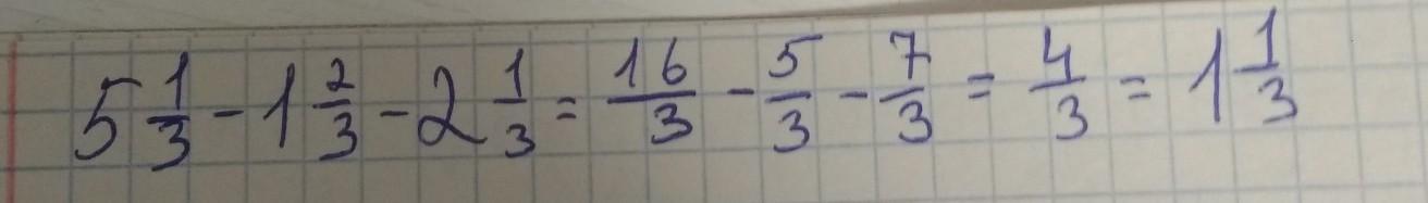 5целых1/3-1целая2/3=3целых2/3-2целых1/3=1Ц1/3