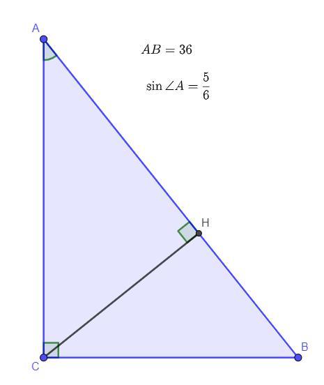 В треугольнике АВС угол С равен 90°, CH - высота, АВ = 36, sin A = 5/6. Найдите длину отрезка АH
