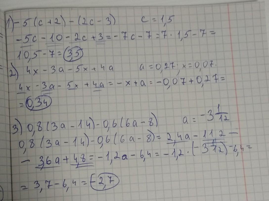 -5(с+2)-(2с-3), якщо с=1,5