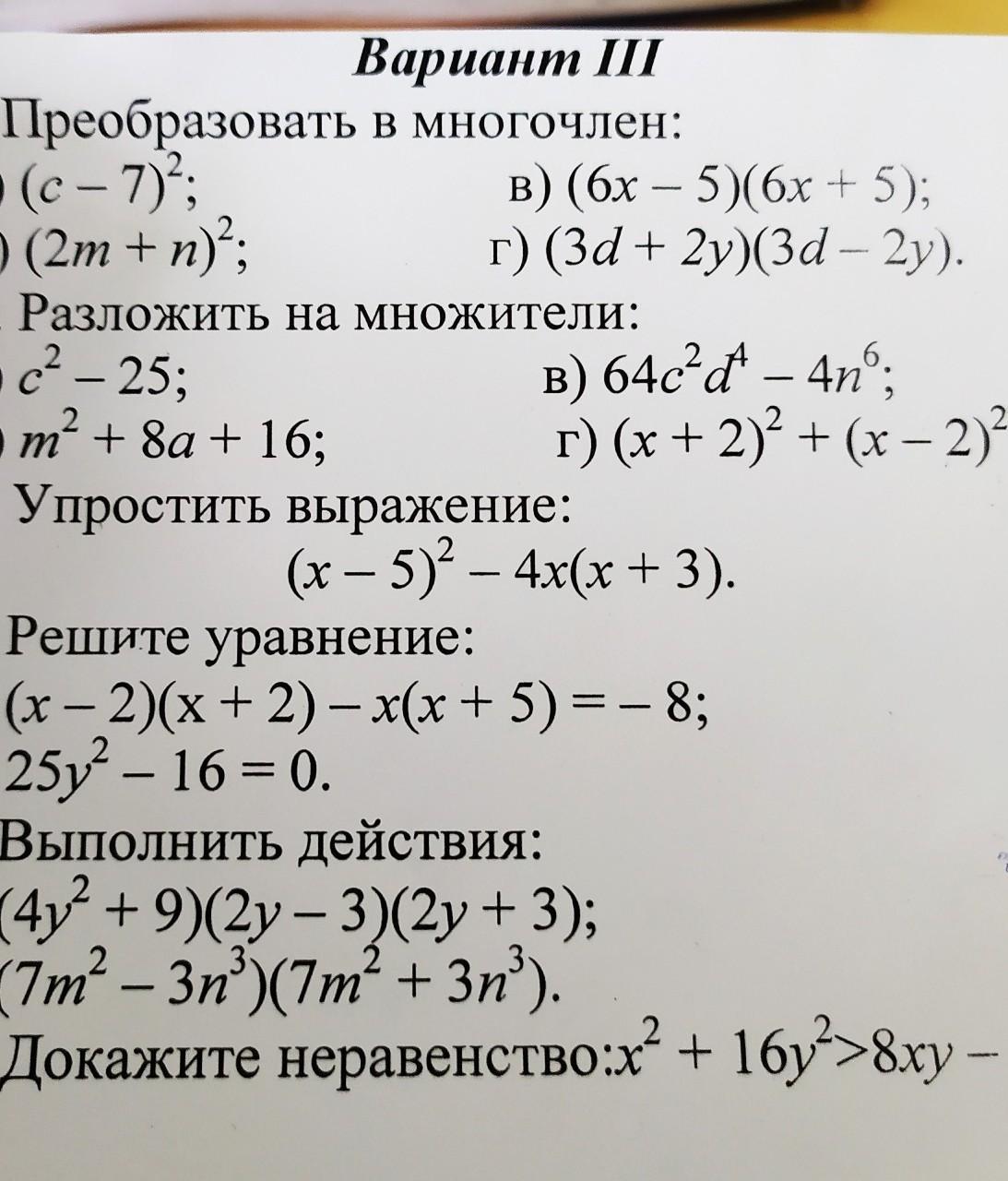 (x-2)(x+2)-x(x+5)=-8 25y^2 - 16 = 0