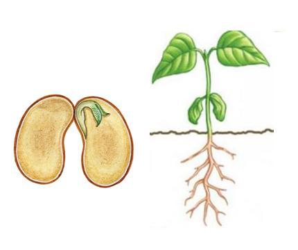 Рассмотрите рисунок. Сравните части семени и проростка фасоли.