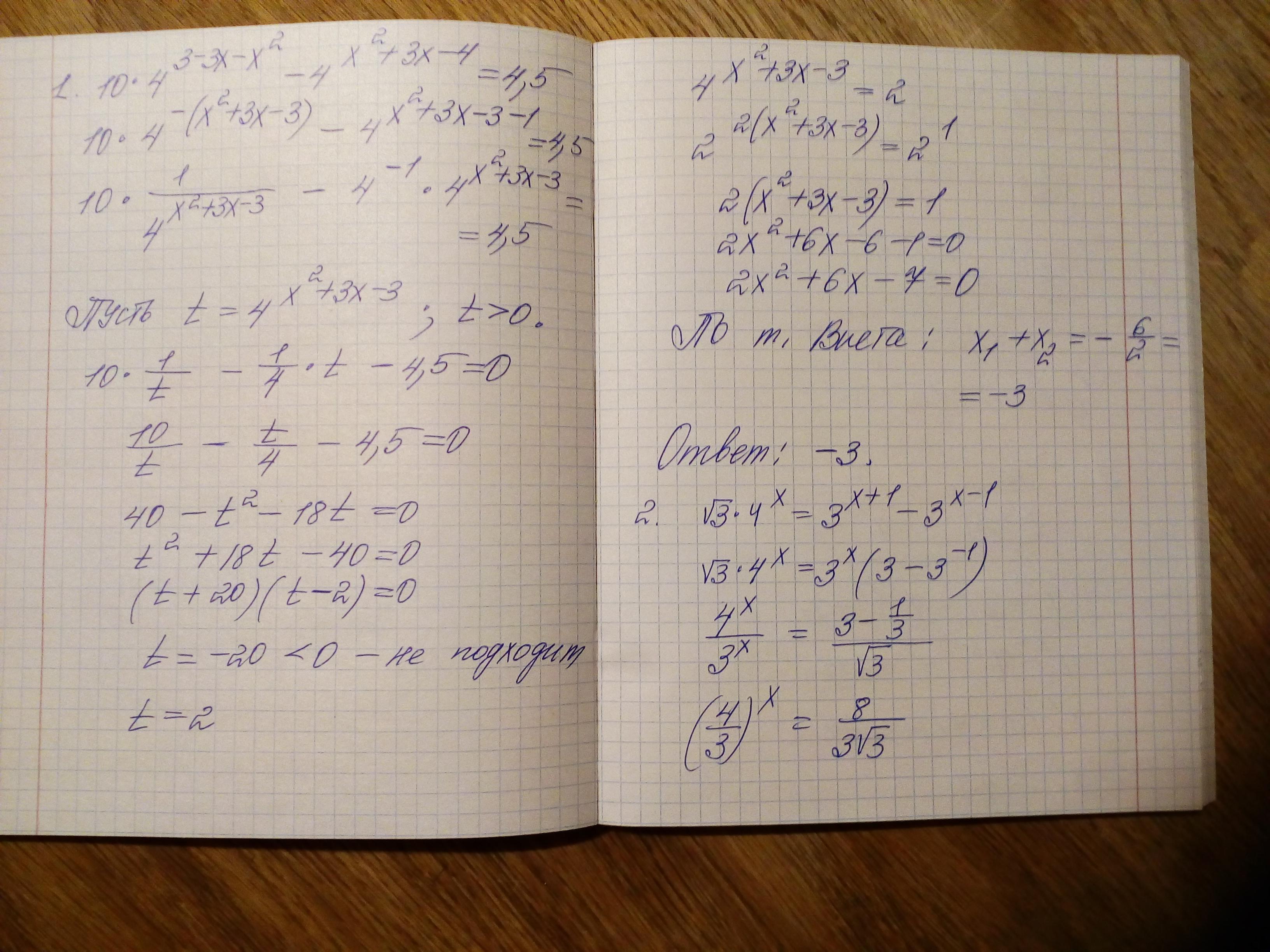 1. Найдите сумму корней уравнения 10×4^(3-3х-х^2) - 4^((х^2)+3х-4)=4,5.