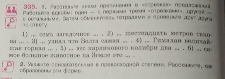 335. 1. Расставьте знаки препинания в «отрезках» предложений.