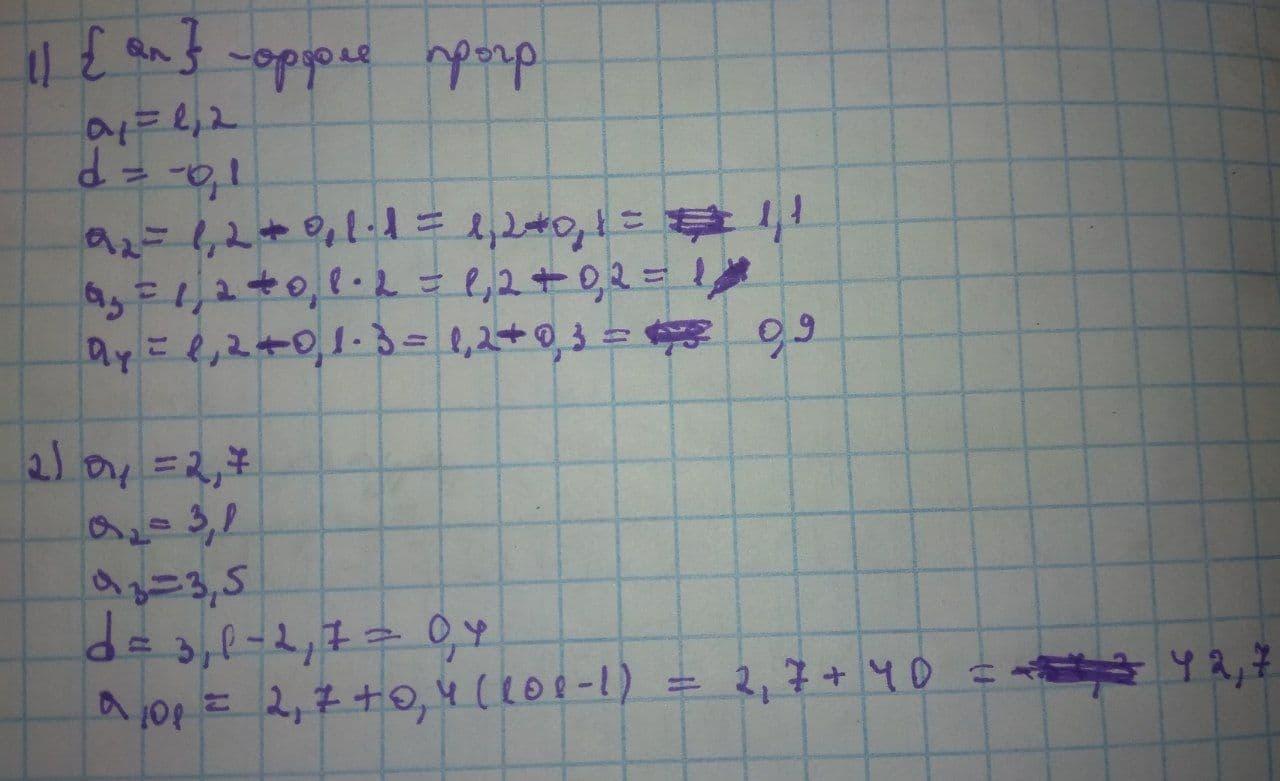 1)Знайдіть перші чотири члени арифметичної прогресії (аn), якщо а1 = 1,2, d = -0,l.