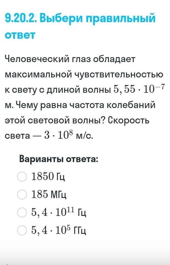 f = v/λ=3*10⁸/5,55*10⁻⁷=0,54*10¹⁵ Гц=5,4*10¹⁴ Гц=5,4*10⁵ ГГц