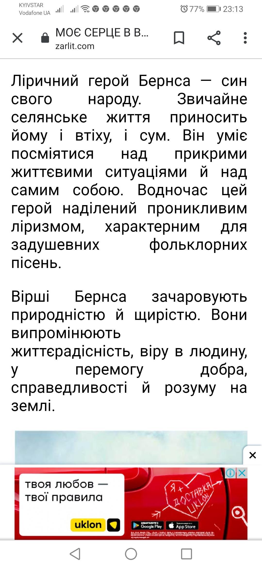 Будь-ласка скоршеее. "Риси характеру ліричного героя вірша Р. Бернса. "Моє серце в Верховині...
