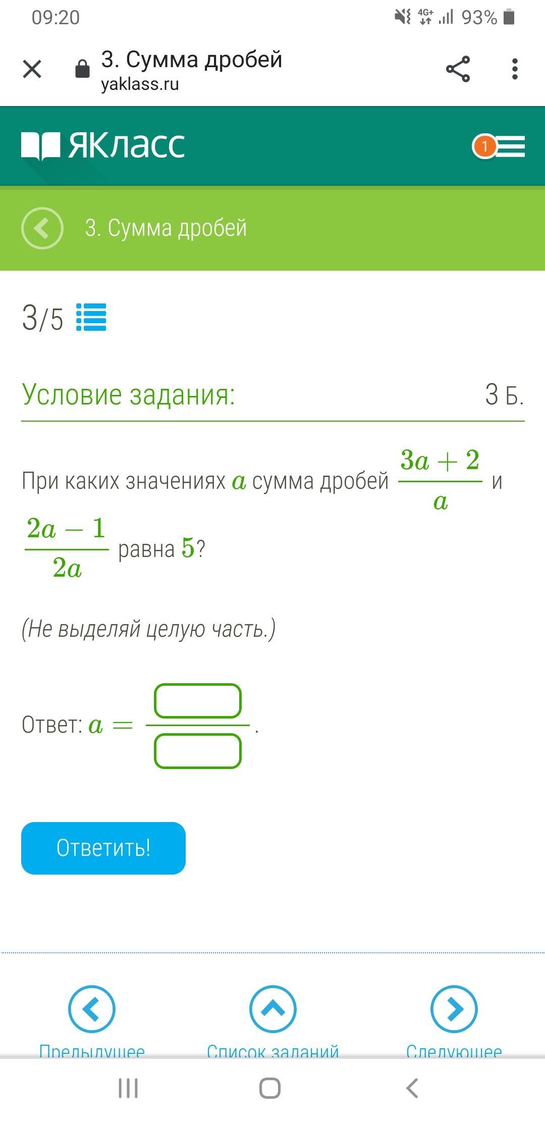 При каких значениях a сумма дробей 3a+2a и 2a−12a равна 5?