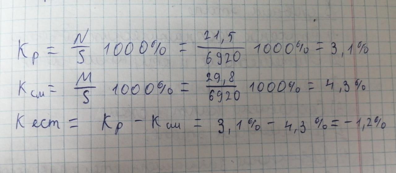 Решите задачу Численность населения составляет 6920 тыс.чел, родилось 21,5 тыс, смертность-29,8 тыс. чел. Рассчитайте коэффициенты естественного движения населения- рождаемость,смертность, естественный прирост