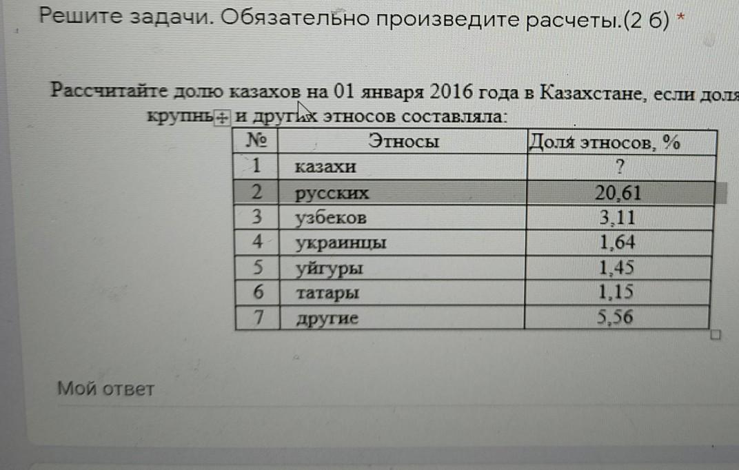 Рассчитайте долю казахов на 01 января 2016 года в Казахстане, если доля