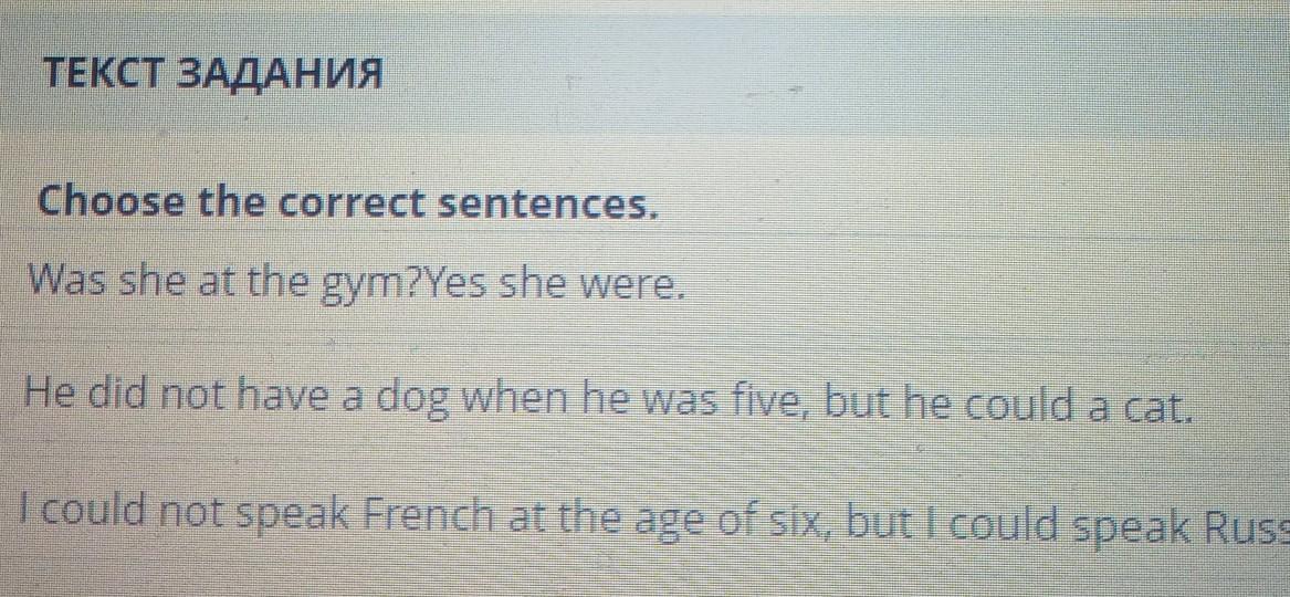 третье предложение верное. I could not speak French at the age of six, but I could speak Russian.