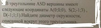 AS^2=(2-0)^2+(-1-0)^2+(3-0)^2=4+1+9=14; AS=√14