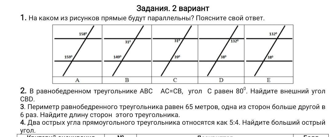 Задание №1: вариант В, так как внутренние односторонние в сумме дают 180°, по свойству параллельности прямых