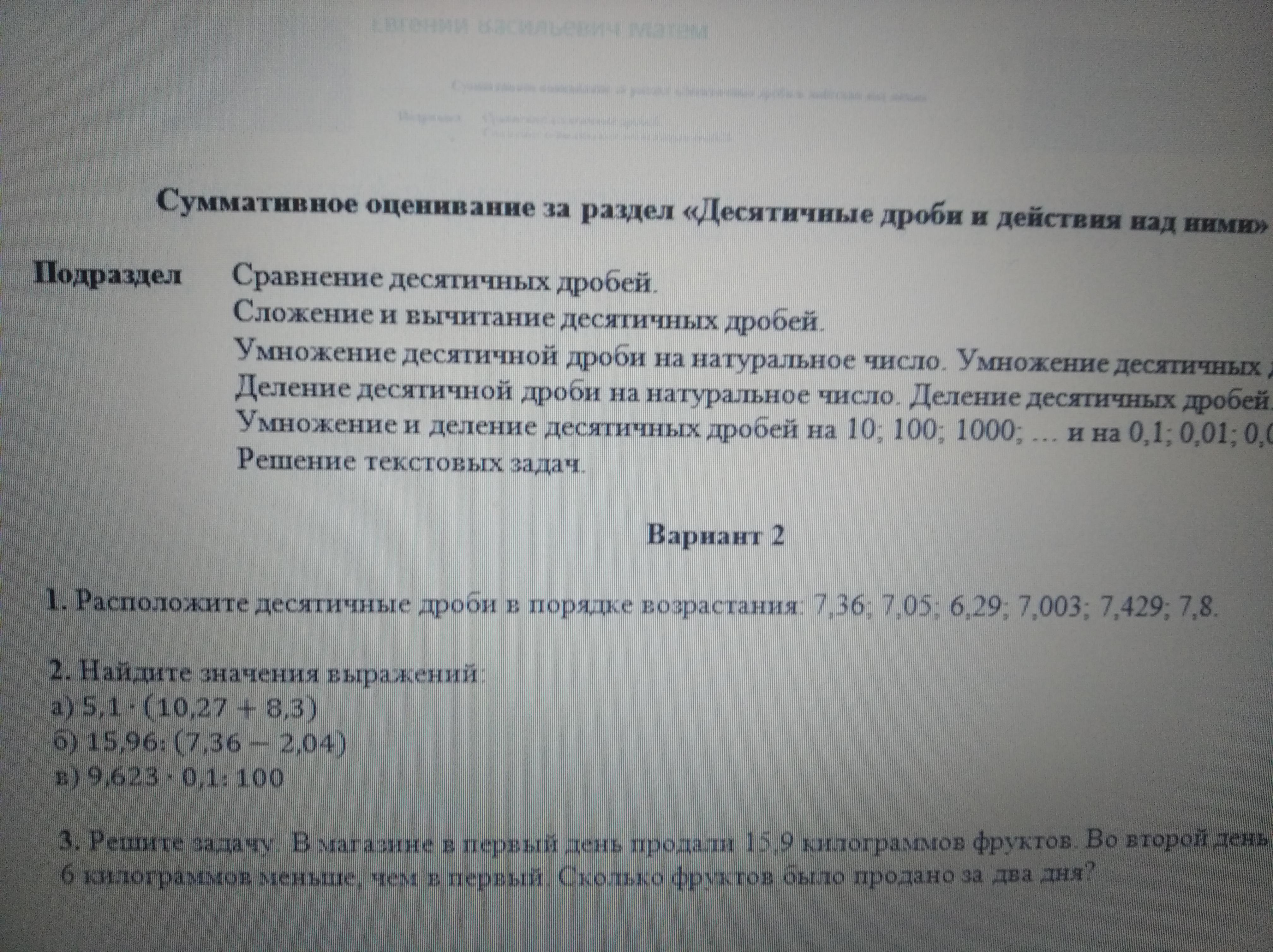 1.Расположите десятичные дроби в порядке возрастания: 7,36; 7,05; 6,29; 7,003; 7,429; 7,8. Помогите пожалуйста дам лучший ответ и 50 баллов сор математика