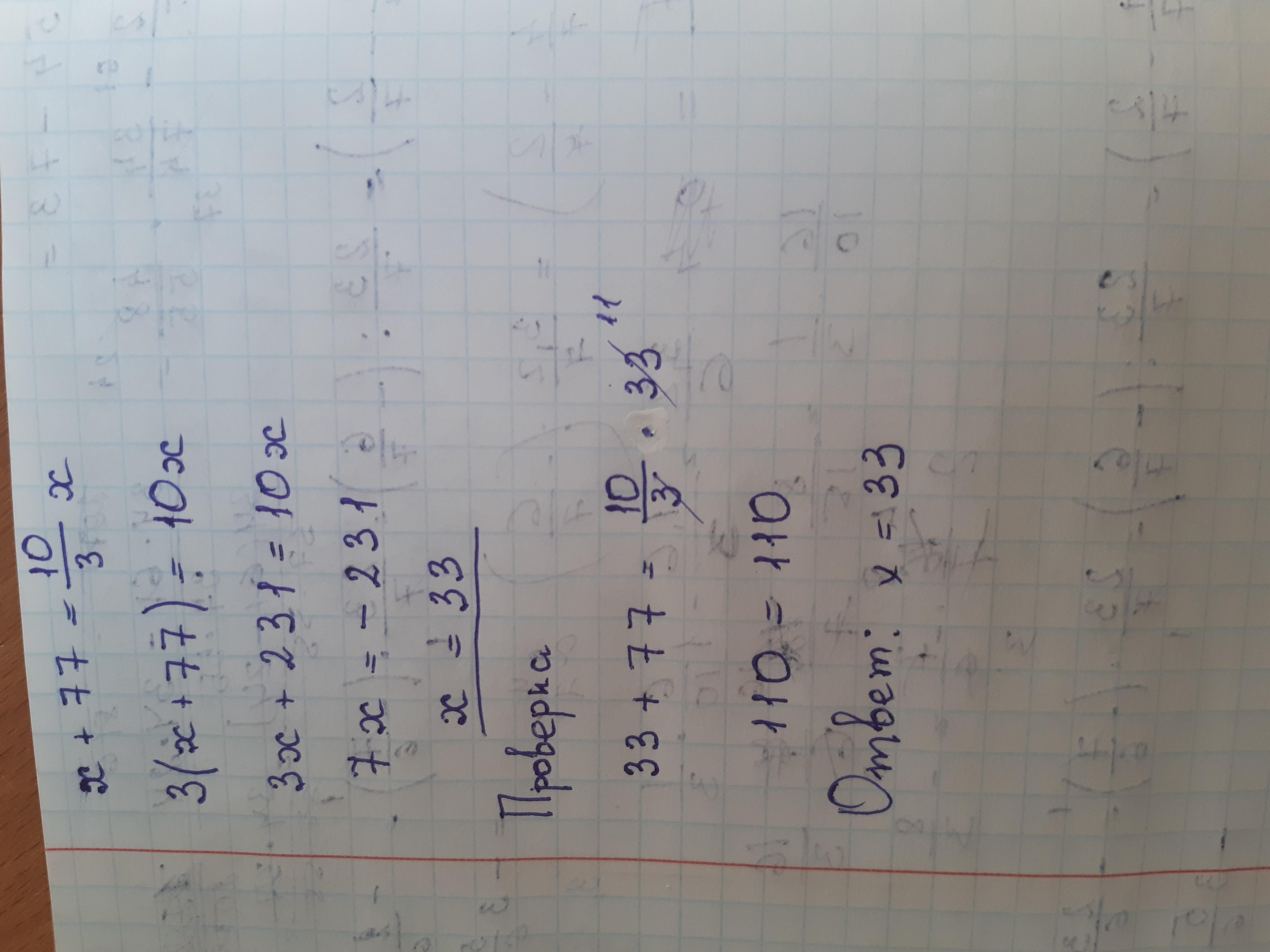 число увеличили на 77 и получили 10/3 от исходного числа (смотрите на фото)