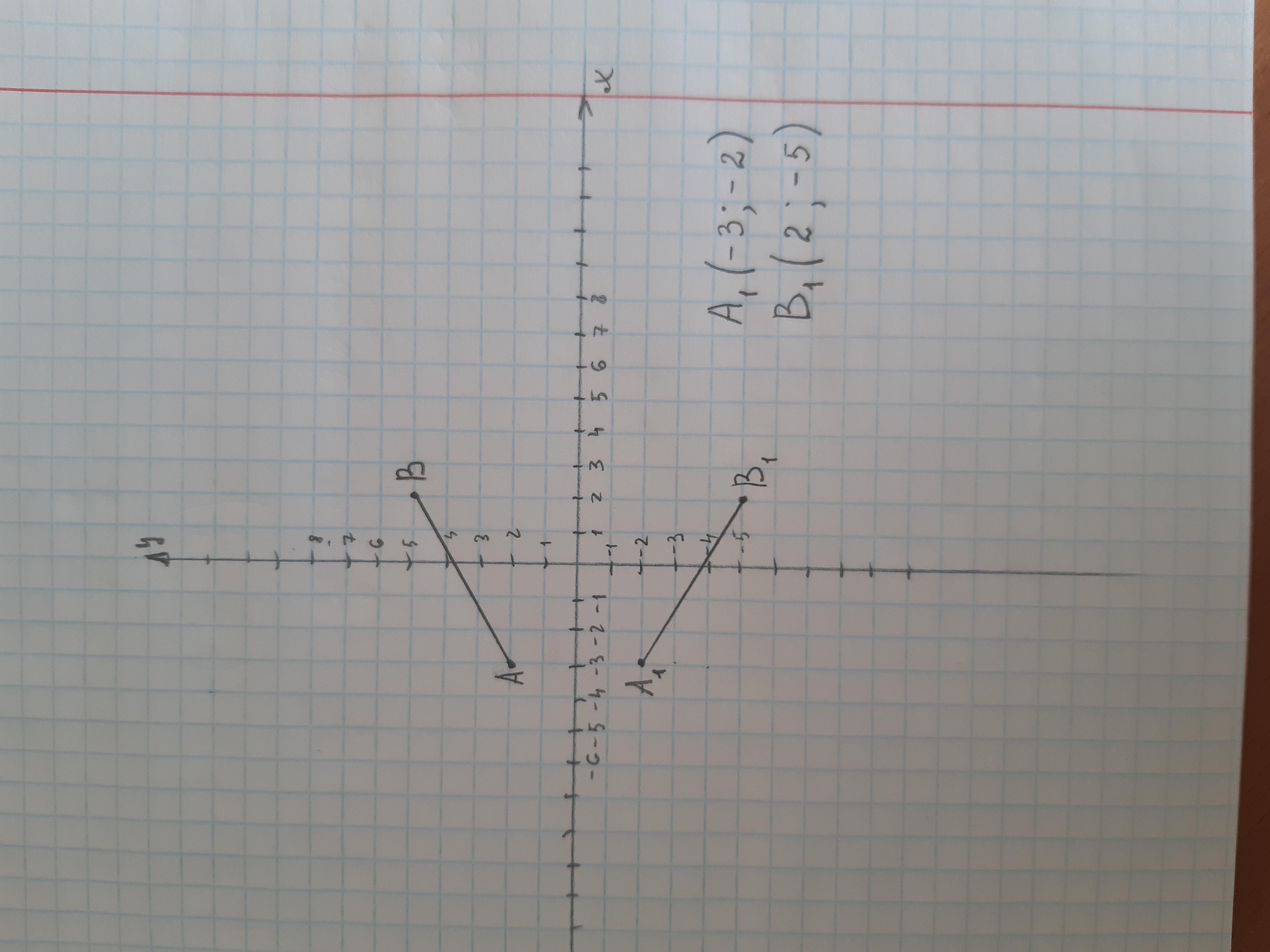 Если отрезок симметричен относительно оси абсцисс, то координаты точек его концов по оси Х сохраняются, а координаты по оси У меняют знак на противоположный.