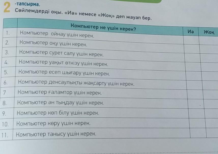 2. Сөйлемдерді оқы. «Иә» немесе «жоқ» деп жауап бер.
