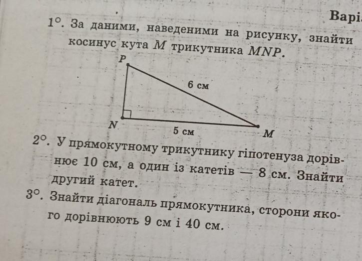 5/6 - косинус это отношение прилежащего катета к гипотенузе