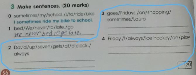 2.David always gets up at seven o'clock. 3.Laura sometimes goes shopping on Fridays. 4. I always play ice hockey on Friday.