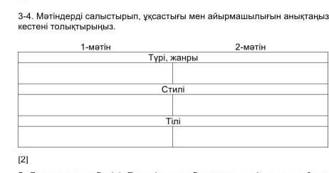 Мәтіндерді салыстырып, ұқсастығы мен айырмашылығын анықтаңыз, кестені толтырыңыз. екі мәтінніңде жауабы керек
