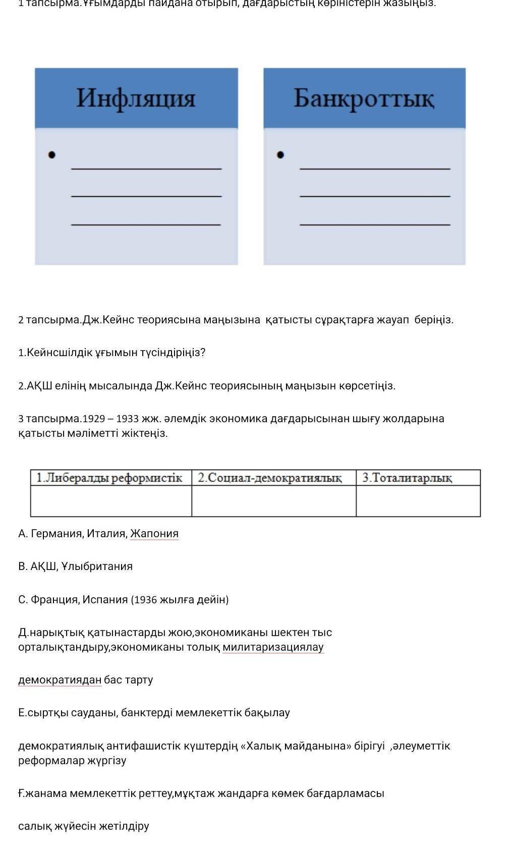 1.Кейнсшілдік-экономикалық қызметті мемлекеттік реттеу қажеттігін жақтайтын экономикалық саясат.(Ағылшынша экономисі әрі публицисі Дж.Кейнстің есімімен)