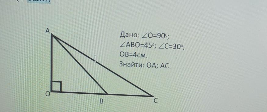АО=4= ОВ, бо кут ОАВ= 45 тр АОВ (рівнобедрений трикутник)