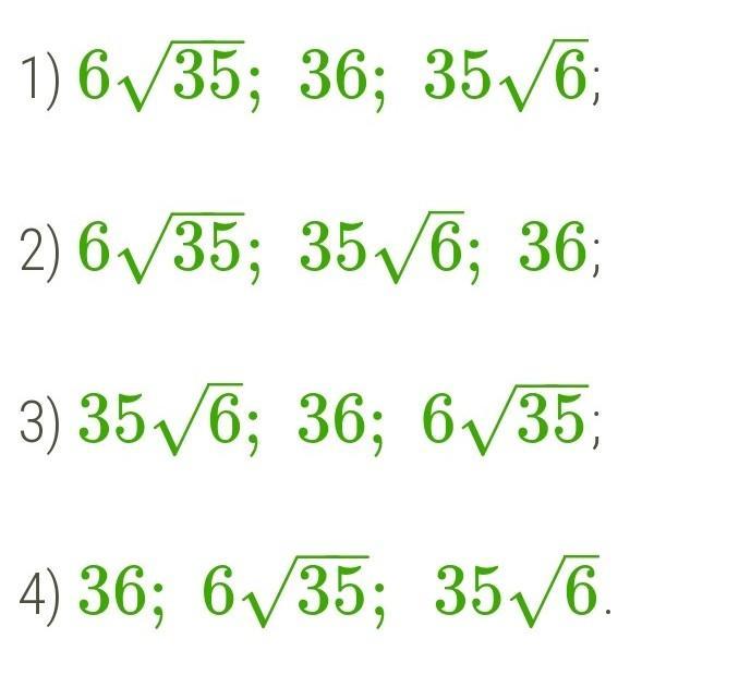 2 не подходит, поскольку корень из 6 между 2 и 3 , корень из 6 на 35 больше 36