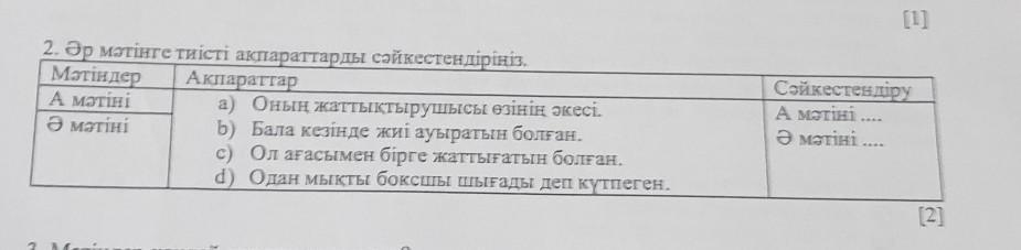 2. Әр мәтінге тиісті ақпараттарды сәйкестендіріңіз.