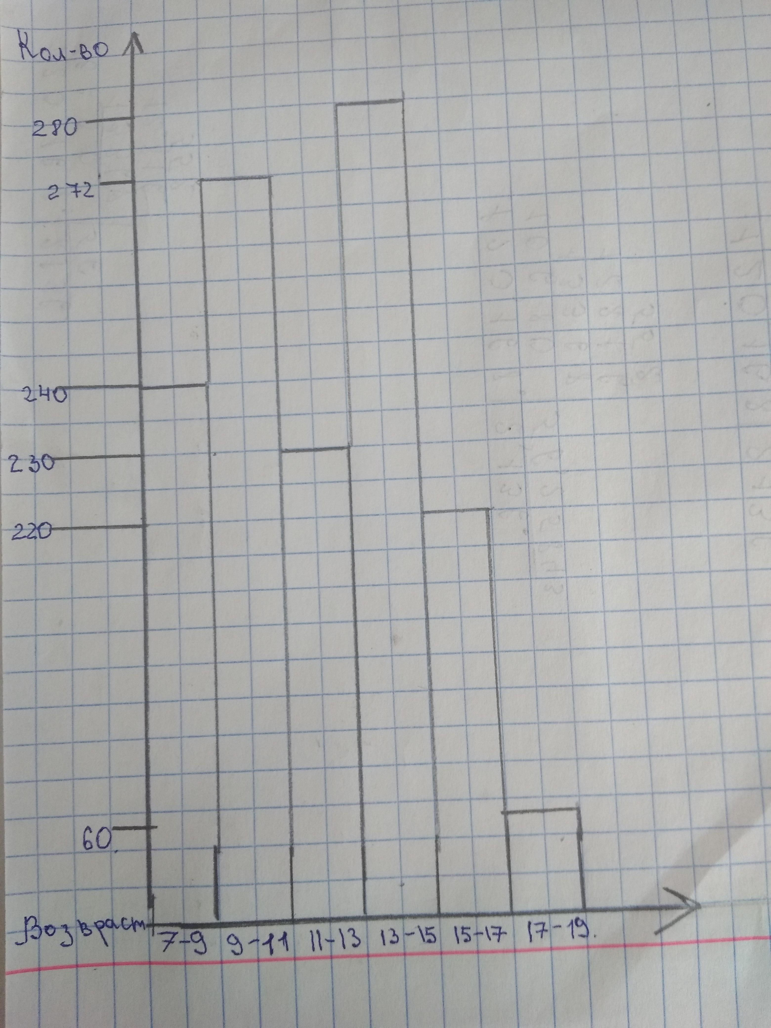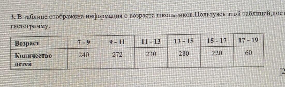 3. В таблице отображена информация о возрасте школьников. Пользуясь этой таблицей, постройте