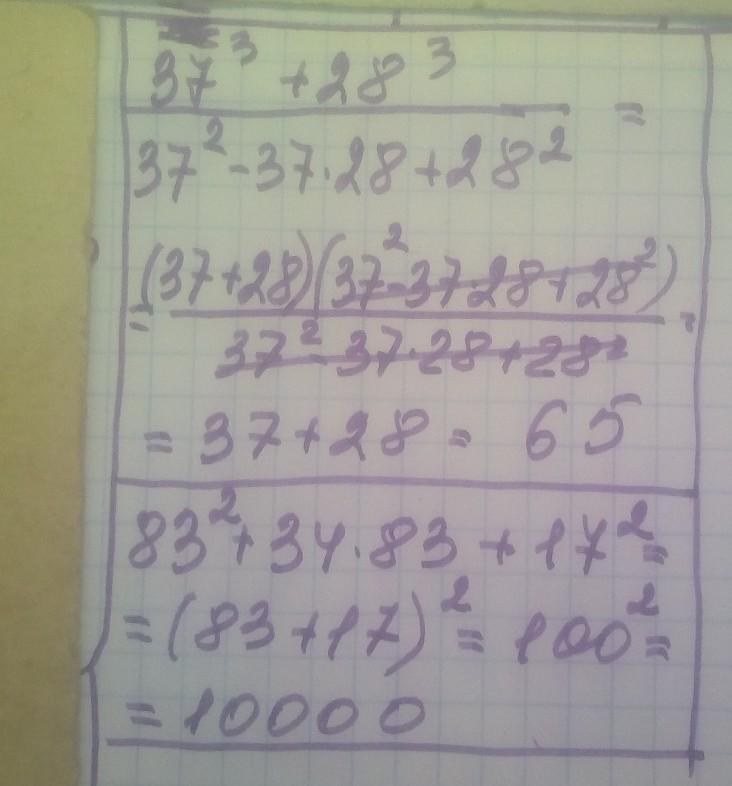 а)(37^3+28^3)/(37^2-37∙28+28^2 )
