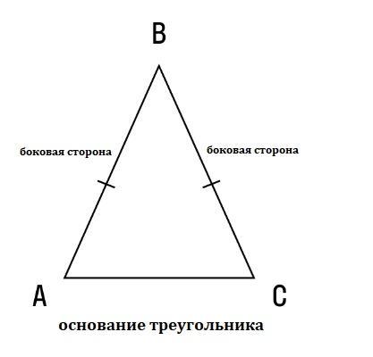 - Равнобедренным треугольником называют треугольник, у которого две стороны равны. Равные стороны называют боковыми сторонами равнобедренного треугольника, а третья сторона, не равная им, называется основанием.