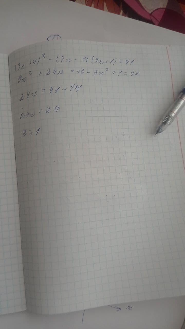 9x²+2*3x*4 + 16 - 9x² + 1=41;