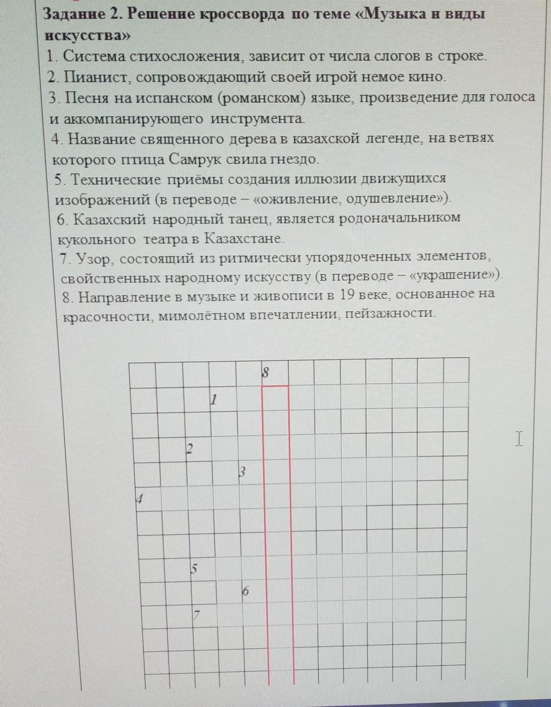 Заданне 2. Решенне кроссворда по теме «Музыка и Bиды
